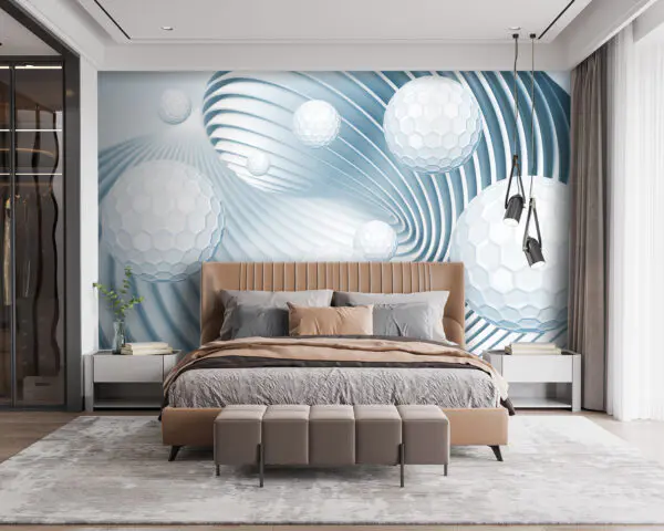 Fototapeta Bílý vířivý povrch s bílými kuličkami