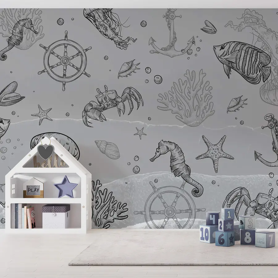 Fototapeta Šedé pozadí s mořskými tvory