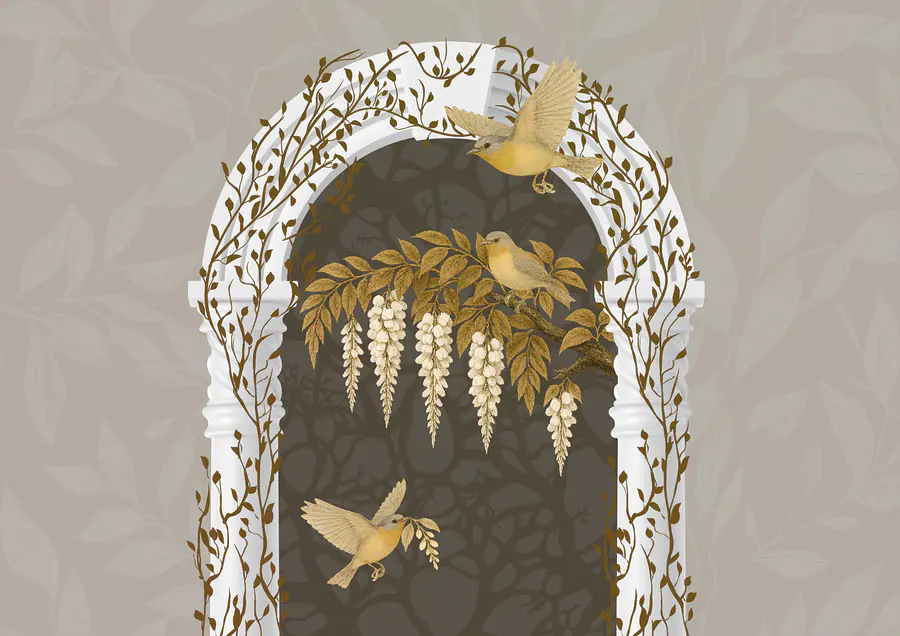 Fototapeta Bílý oblouk s přeletujícími ptáky