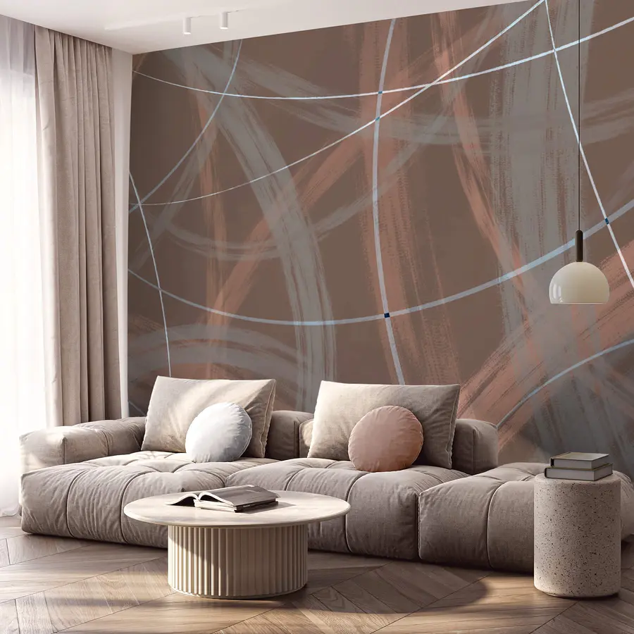 Fototapeta Hnědé a bílé pozadí s čarami a kruhy