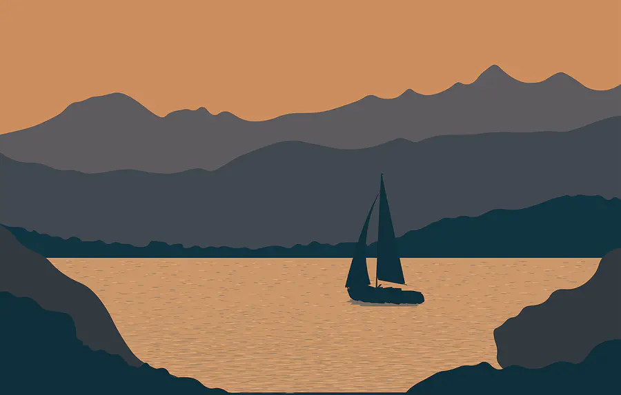 Fototapeta Plachetnice na vodě s horami v pozadí