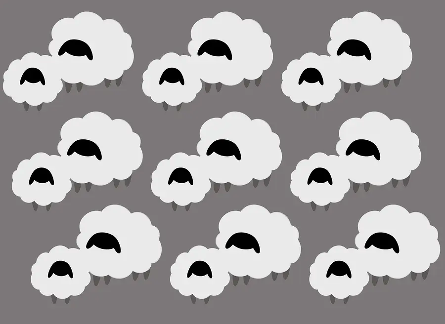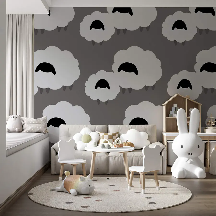 Fototapeta Skupina bílých mraků s černými ovcemi