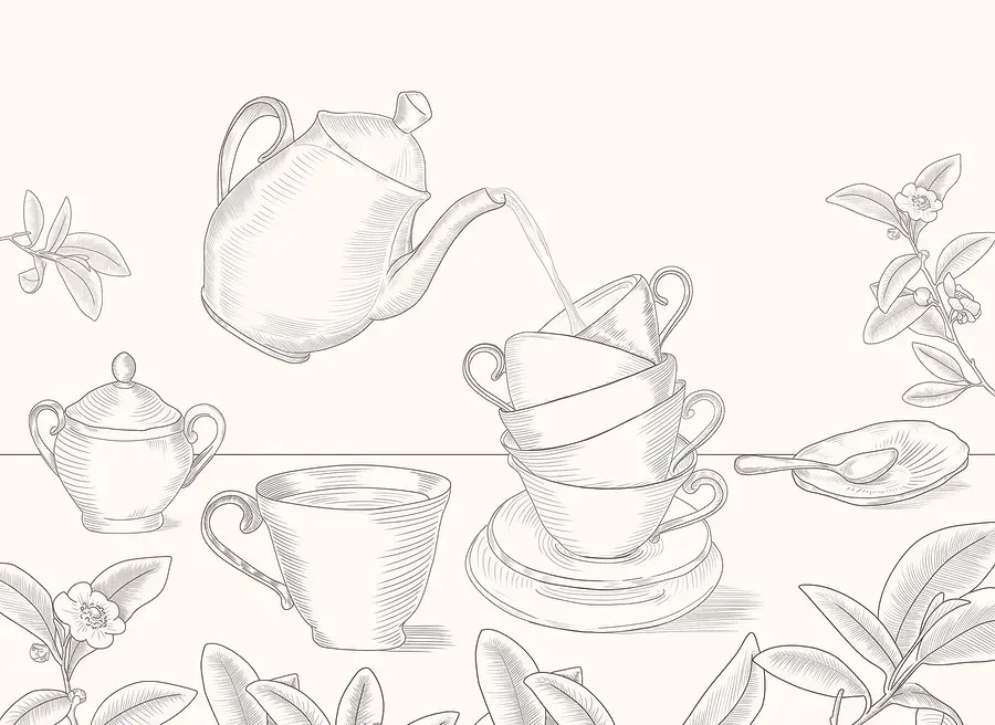 Fototapeta Čajová konvice nalévá čaj do hromádky čajových šálků