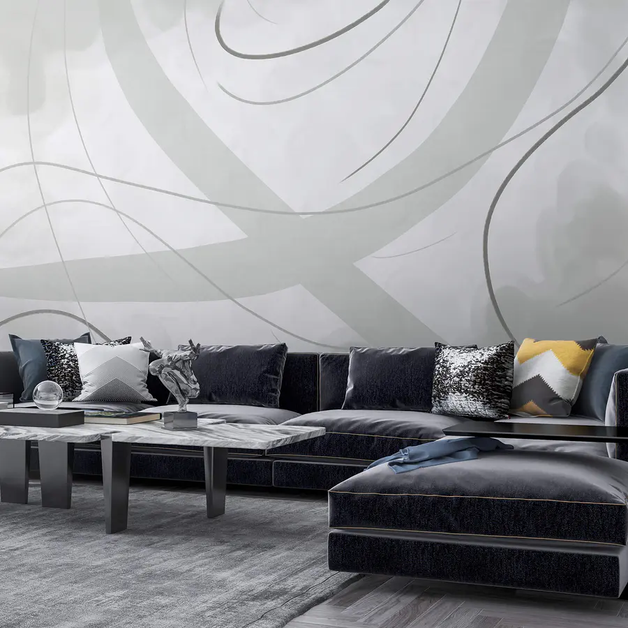 Fototapeta Bílé a šedé pozadí s čarami a křivkami