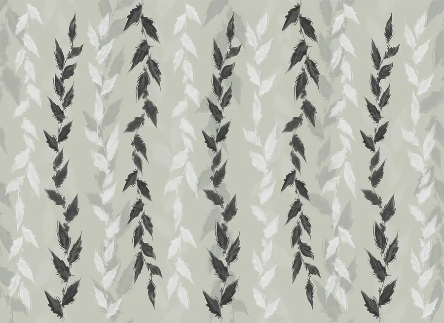 Fototapeta Černé a bílé listy na šedém pozadí
