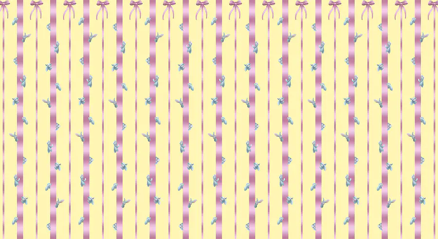 Fototapeta Růžovo-žluté pruhované pozadí s ptáky a mašlemi
