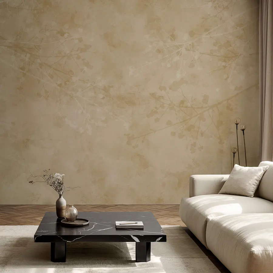 Fototapeta Béžové pozadí s větvemi a listy