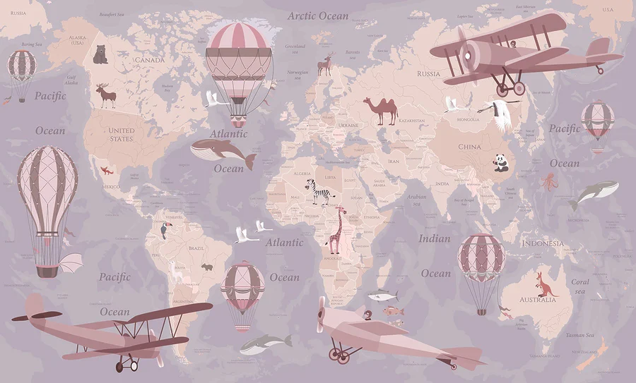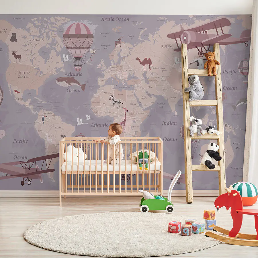 S touto nádhernou nástěnnou mapou světa proměníte každý dětský pokoj v dobrodružnou zónu. Obsahuje hravá letadla a náladové horkovzdušné balóny a je ideální pro rozvíjení představivosti. Představte si, jak se na ni malé děti dívají a sní o dalekých zemích a vzrušujících cestách. Je to jako pas za dobrodružstvím přímo na zdi! Jemné barvy zajišťují, že se hodí do každého pokoje, aniž by zahltil atmosféru. Ať už jde o hraní nebo pohádky před spaním, díky této nástěnné malbě bude učení se zeměpisu vypadat spíše jako zábavná hra než jako domácí úkol. Navíc může inspirovat i k několika cestovatelským plánům do budoucna - kdo ví?