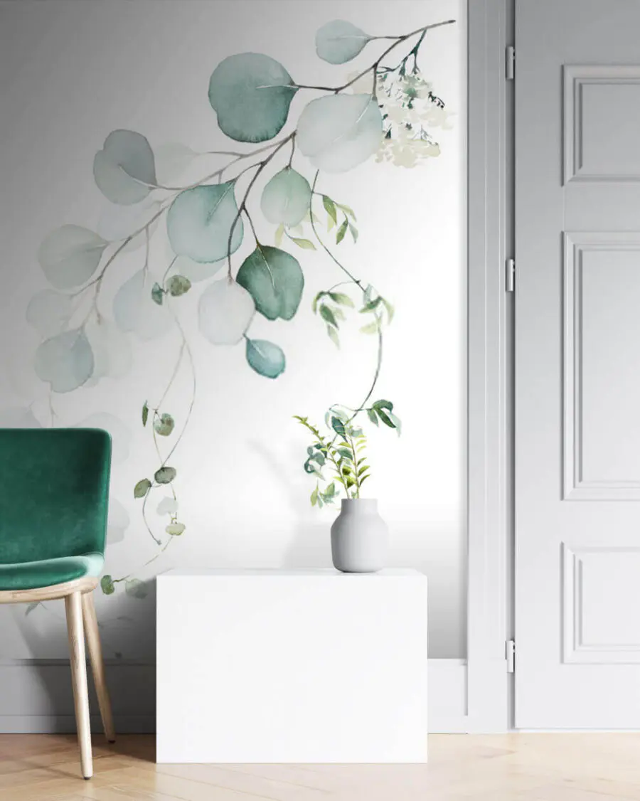 Proměňte každou místnost v klidné útočiště díky této krásné akvarelové nástěnné malbě větve a listů. Jemné odstíny zelené a nádech jemné modré vdechnou vašemu prostoru život a dodají mu pocit svěžesti a přívětivosti - téměř jako byste si do interiéru přinesli kousek přírody. Představte si, že se probudíte, protáhnete se a první, co uvidíte, bude tato uklidňující nástěnná malba. Díky ní se i ta nejrušnější rána stanou o něco klidnějšími. Ať už zdobí stěnu obývacího pokoje, nebo rozjasňuje útulný čtecí koutek, je příjemným podnětem ke konverzaci. Je to jako mít malý umělecký kousek, který změní atmosféru a díky němuž se každý okamžik cítí o něco výjimečnější. Ideální pro ty, kteří oceňují krásu v jednoduchosti!
