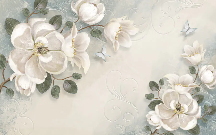 S touto úžasnou fototapetou s bílými květy a jemnými listy na jemném pozadí proměníte každou místnost v oázu klidu. Představte si, že popíjíte čaj a díváte se na tyto květy - starosti se prostě rozplynou, že? Jemné odstíny vnášejí do interiéru nádech klidu a přírody, takže se skvěle hodí do útulného obývacího pokoje nebo klidné ložnice. Navíc, buďme upřímní, kdo by nechtěl, aby se mu v prostoru třepotal jeden nebo dva fantaskní motýli? Je to jako malé umělecké dílo, ve kterém můžete žít. Tato nástěnná malba nejen oživí stěny, ale vnese do každodenního života šepot květinové elegance.