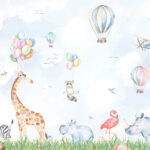 Fototapeta Akvarel zvířat a balónků