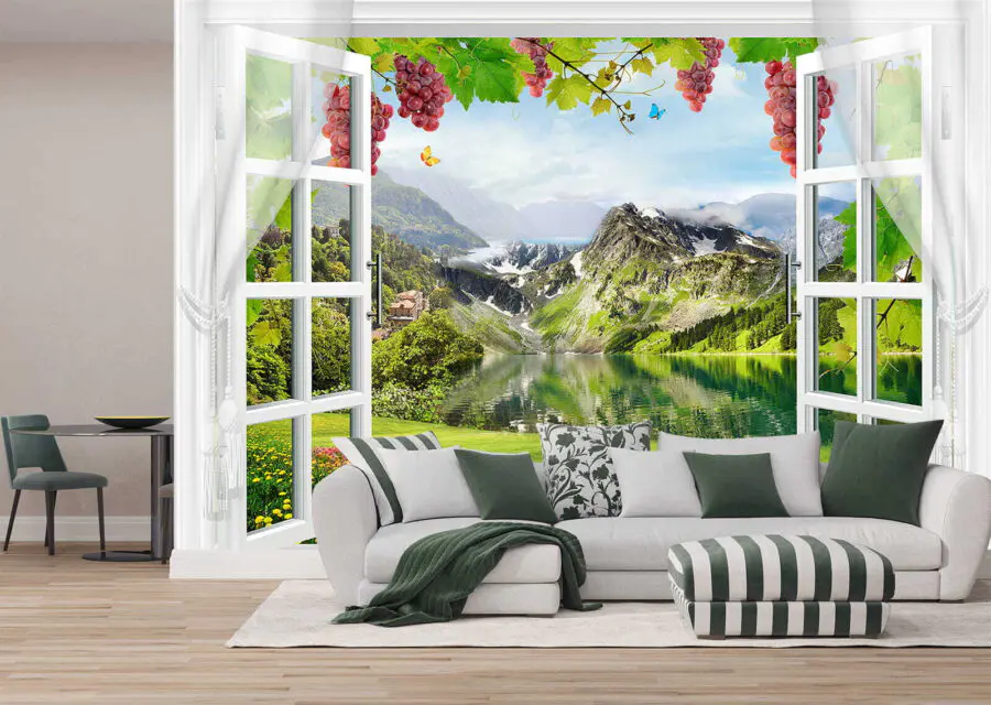 317.69 Kč190.61 KčFototapeta Okno s výhledem na pohoří a stromy