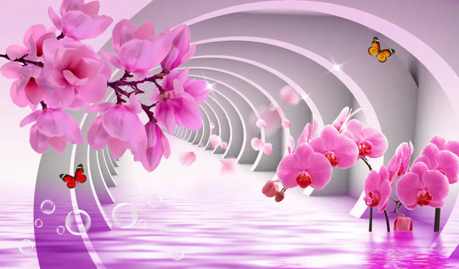 Fototapeta Růžové květy v tunelu