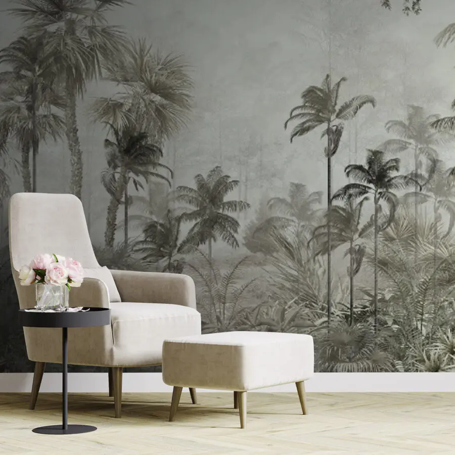 Proměňte každou místnost v oázu klidu pomocí této úžasné nástěnné malby se snovou skupinou palem ukrytých v mlžném lese. Představte si, že vstoupíte do klidné džungle, kde každý pohled připomíná mini dovolenou. Je to dokonalý únik od každodenního shonu, který navozuje klidnou atmosféru, díky níž se i pondělky zdají být o něco méně skličující. Měkké tóny si krásně rozumí s jakýmkoli interiérem, takže se snadno přizpůsobí designu. Je to jako mít kousek přírody na dosah ruky! Jen si představte, jak popíjíte kávu obklopeni svěží zelenou krásou - jaké blažené ráno, že? Ať už se jedná o obývací pokoj, ložnici nebo útulný koutek, tato nástěnná malba bez námahy dodá nádech klidu a zázraku.