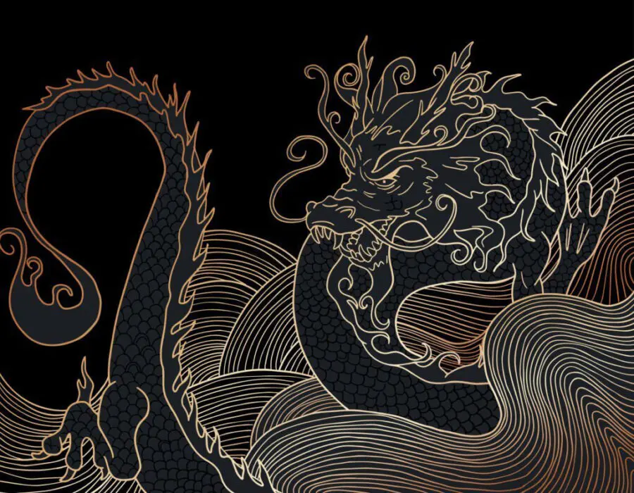 Fototapeta Mystický drak vířící v temnotě