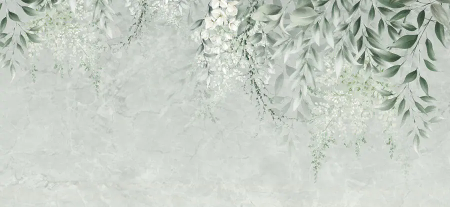 317.69 Kč190.61 KčFototapeta Bílá zeď s listy a květinami