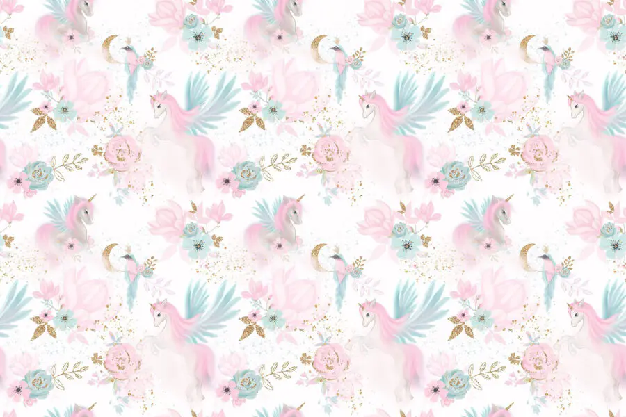Fototapeta Vzor růžových a modrých jednorožců a květin