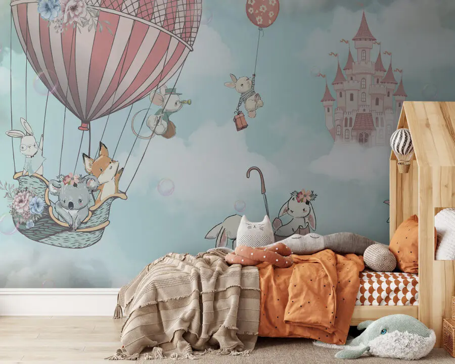 329.23 Kč181.08 KčFototapeta Skupina růžových mraků a králíček držící balónky