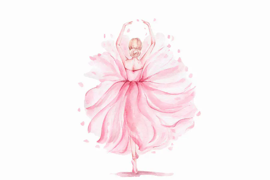 S touto akvarelovou nástěnnou malbou ženy ladně se točící ve splývavých růžových šatech proměníte každou místnost ve snový útěk. Představte si, jak by vypadala v pokojíčku malé holčičky, které by dodala nádech pohádkového kouzla. Každý pohled je jako vstup do příběhu, kde jemné odstíny tančí na stěnách a vybízejí k rozvíjení fantazie. Není to jen umění, je to pocit. Jemné tahy vytvářejí pocit klidu, ideální pro pohádky před spaním nebo snění. Tato nástěnná malba promlouvá ke každému srdci s láskou k rozmarům a kouzlu - nechte ji inspirovat k nekonečným dobrodružstvím ve vašem prostoru!