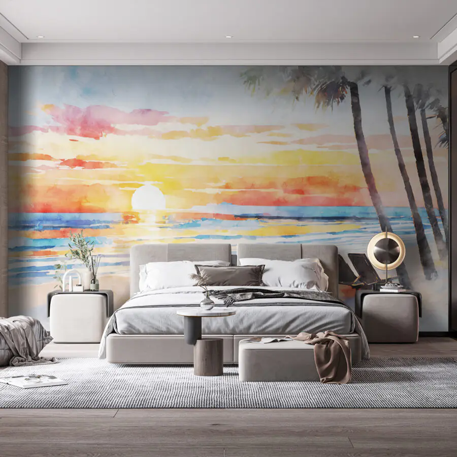 Jste připraveni proměnit svůj obytný prostor v klidné přímořské útočiště? Tato nástěnná akvarelová malba pláže se západem slunce jako by přinesla dovolenou na pláži přímo k vám domů. Představte si, jak váš pokoj omývají teplé odstíny zapadajícího slunce, na břehu šplouchají měkké vlny a palmy se jemně pohupují. Téměř slyšíte racky! Ideální pro chvíle, kdy potřebujete duševní únik nebo pohodovou atmosféru po dlouhém dni. Skvěle se hodí do každé místnosti, která potřebuje střípek barvy a špetku klidu. Líná nedělní rána jsou teď o něco sladší, nemyslíte?