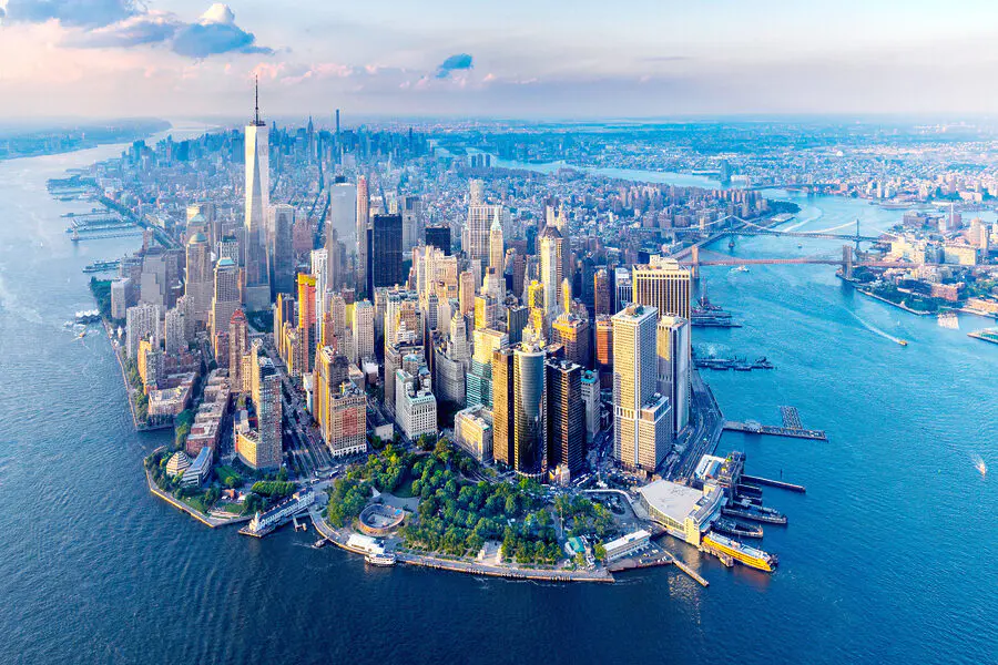 Fototapeta Město s mnoha vysokými budovami a vodní plochou