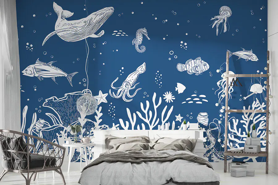 Fototapeta Bílý obrys mořských živočichů