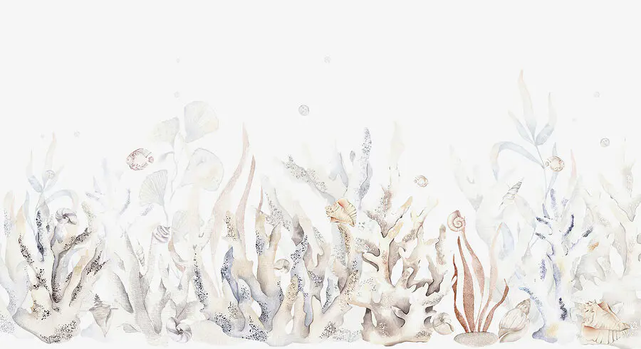 Fototapeta Akvarel mořských řas a mušlí