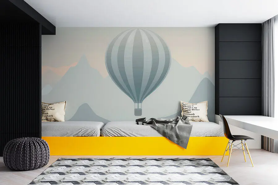Představte si, že vstoupíte do pokoje a přenesete se do klidného světa, kde se nad majestátními horami líně vznáší horkovzdušný balon. Tato nástěnná malba není jen na zeď - je to čistý eskapismus! Je ideální pro snílky i milovníky dobrodružství a přináší jemný pocit klidu a toulek. Představte si lenošení s dobrou knihou; možná dokonce ucítíte chladivý vánek. Ať už se jedná o ložnici nebo kancelář, toto umělecké dílo promění prostory v horský únik. Kdo by řekl, že stěny mohou být tak zábavné?