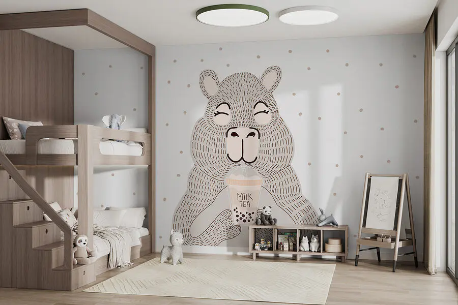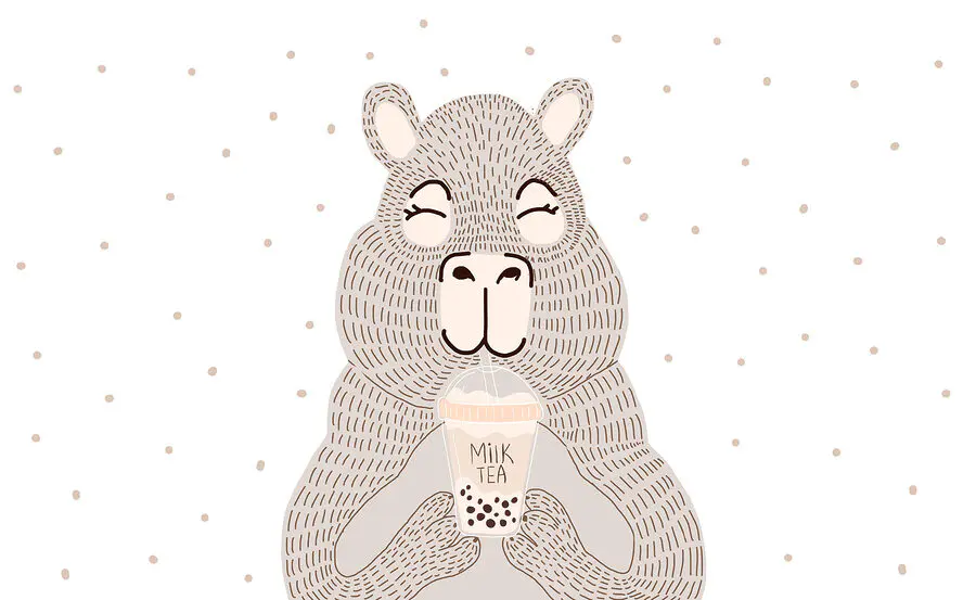 Fototapeta Karikatura medvěda držícího bublinkový čaj