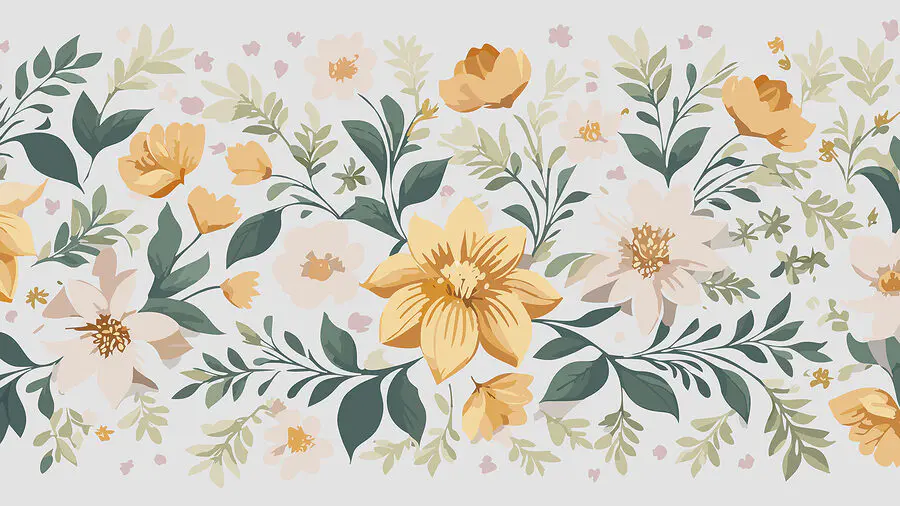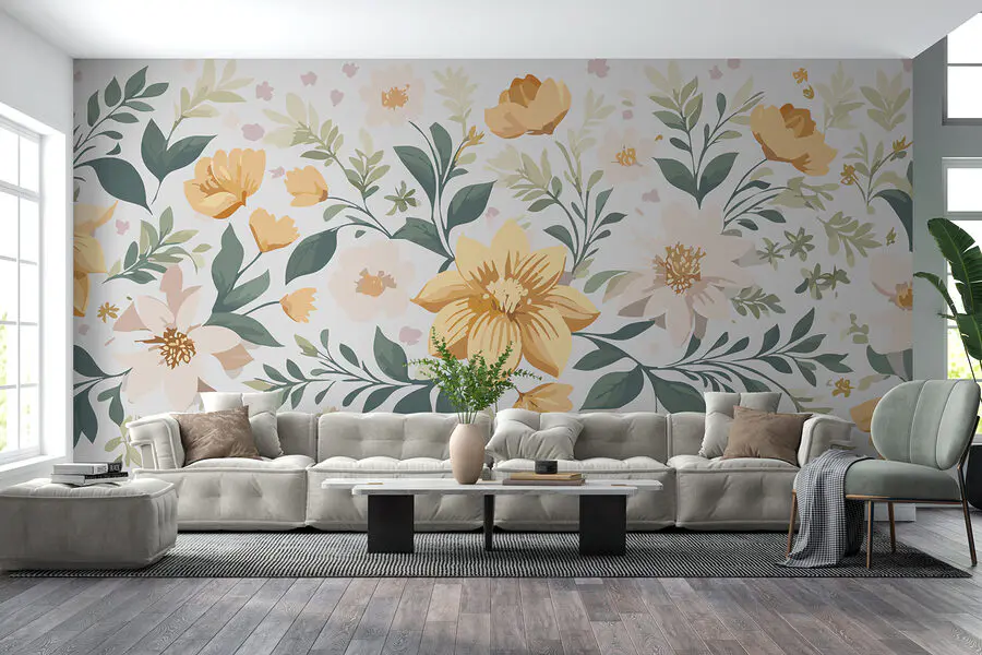 Fototapeta Květinový design se žlutými květy a zelenými listy