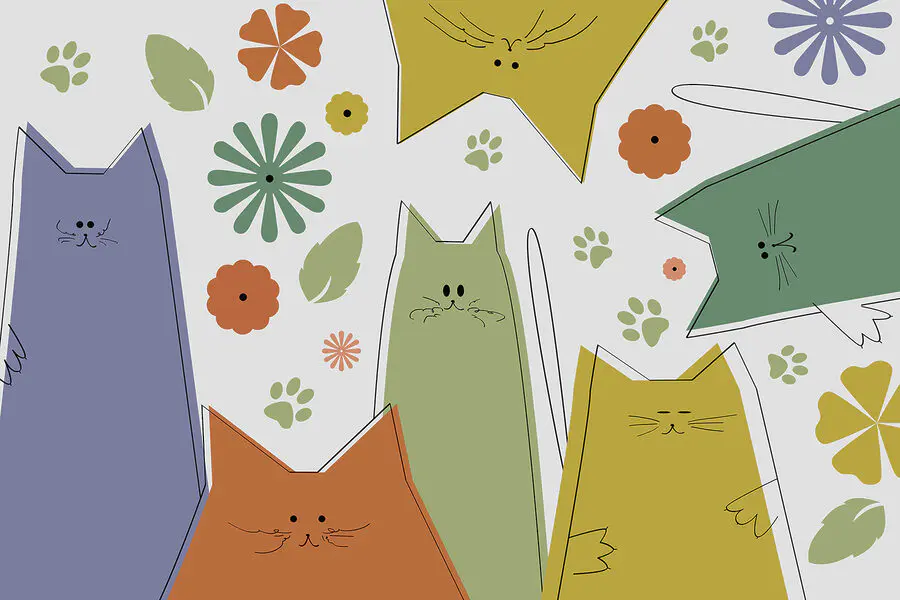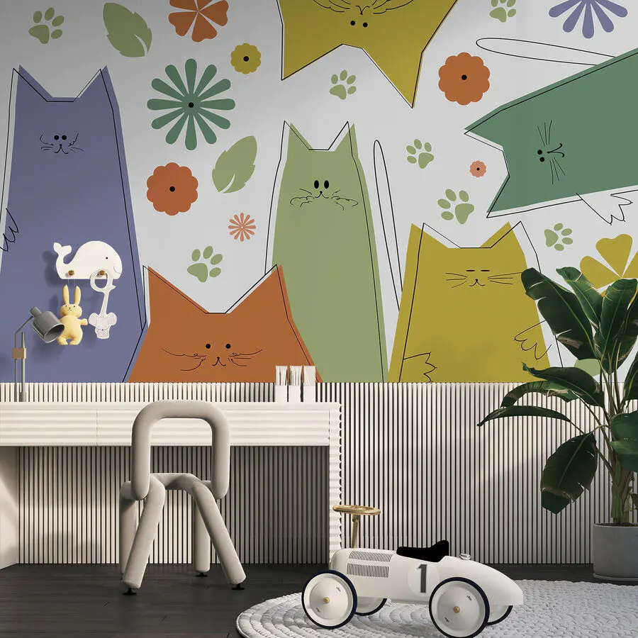 Fototapeta Skupina koček s květinami a listy