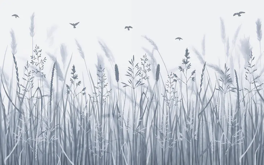 Fototapeta Pole s trávou a poletujícími ptáky