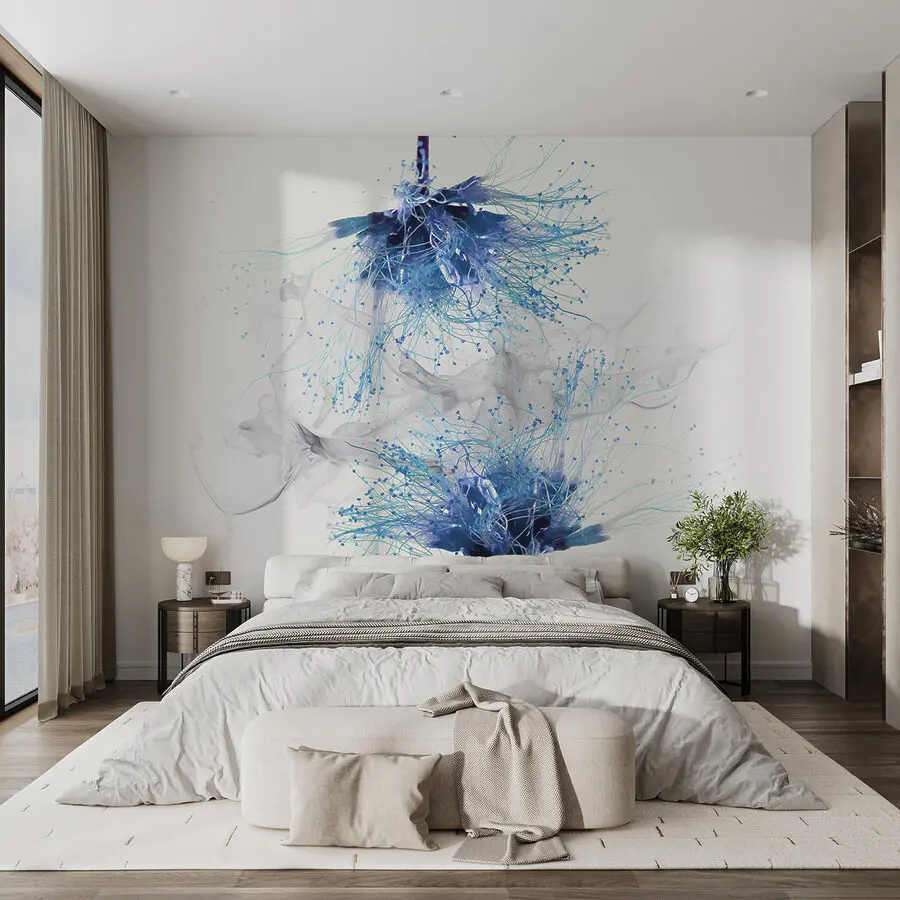 Fototapeta Modré květy s bílým inkoustem ve vzduchu