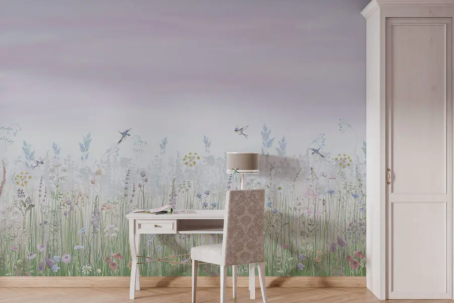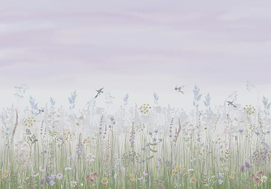 Fototapeta Pole květin a ptáků