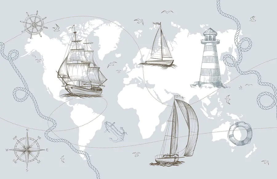 Vyplujte na stylové moře s nástěnnou malbou "Mapa světa s různými loděmi". Tento jedinečný kousek okamžitě promění jakýkoli prostor a pozve vás za dobrodružstvím přímo na vaše stěny. Představte si, že se podíváte nahoru a spatříte ladné plachetnice a okouzlující maják, zatímco budete snít o vzdálených pobřežích. Je to jako mít doma malou dovolenou! Jemné, uklidňující barvy se dokonale hodí k jakémukoli interiéru a vytvářejí klidnou atmosféru - ideální pro čtecí koutek nebo útulný obývací pokoj. Ideální pro milovníky mořeplavby nebo pro každého, kdo touží po troše toulek. Navíc vyvolává nekonečné konverzace - kdo by si nechtěl povídat o svých oblíbených cestovatelských příbězích? Jste připraveni ukotvit trochu šarmu?