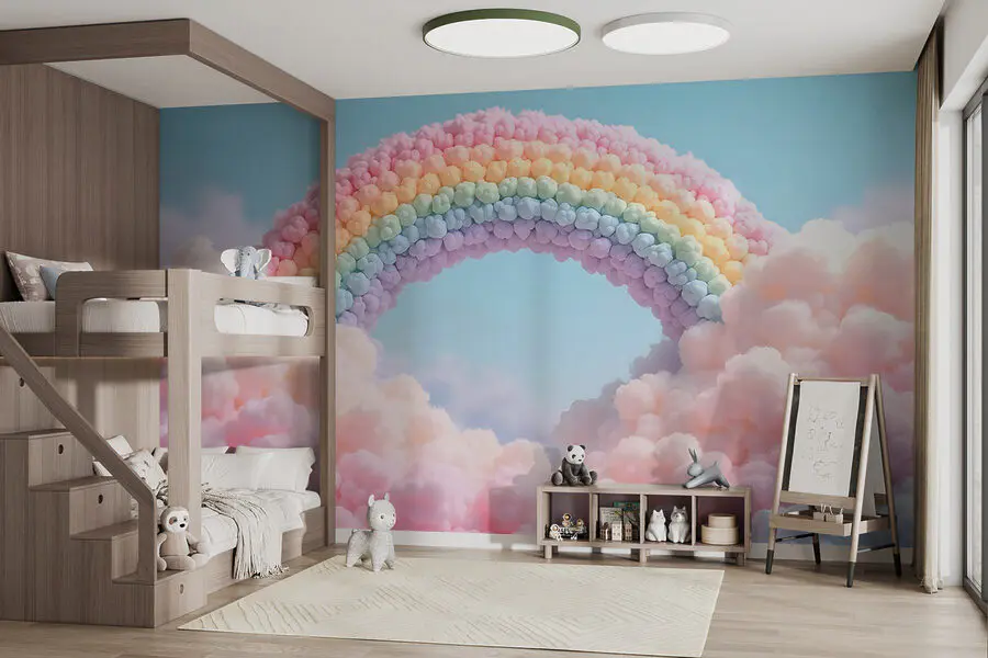 Proměňte svůj prostor ve snový únik s touto rozmarnou "Nástěnnou malbou Duha z mraků". Je to jako kousek cukrové vaty přímo na vašich stěnách! Představte si, že se probudíte a přivítají vás pastelové mraky a duha, která jako by se vznášela jen pro vás. Tato nástěnná malba, která se skvěle hodí do dětského pokoje nebo útulného čtecího koutku, dodá každému pokoji nádech kouzla. Každý pohled na tyto nadýchané mráčky vyvolá úsměv a zažehne radost, jako když na dně tašky najdete hranolky navíc. Není to jen dekorace, je to dobrá nálada, která promění obyčejnou stěnu ve snění. Mluvte o tom, jak se s vámi dá mluvit!