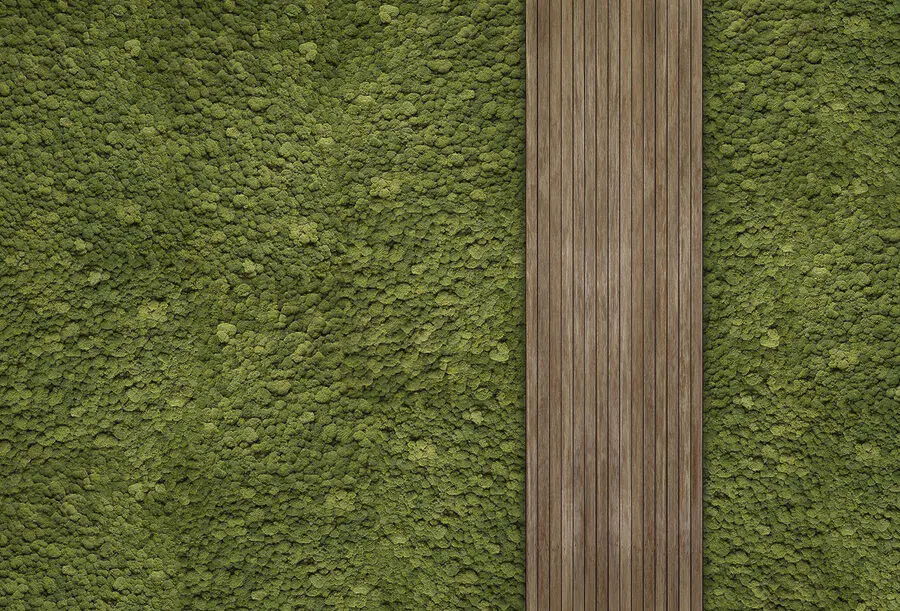 Fototapeta Dřevěné prkno na zeleném koberci