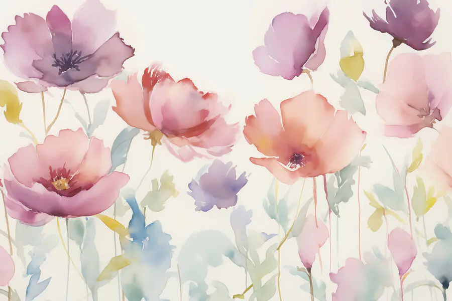Proměňte svůj prostor pomocí této okouzlující akvarelové nástěnné malby s květy v jemných odstínech. Představte si to: zářivé květy jako by se pohupovaly s jemným vánkem a dodaly každé místnosti nádech klidu. Představte si, že se probudíte s tímto nádherným pohledem, je to jako přenést si zahradu do interiéru bez zalévání. Tato nástěnná malba, která je ideální pro vytvoření klidného zákoutí nebo veselého ústředního bodu, vybízí ke snění uprostřed krásy přírody. Navíc, kdo by nechtěl takovýto podnět ke konverzaci? Nechte květiny rozkvést a sledujte, jak vaše stěny ožívají!