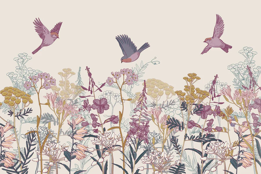 Fototapeta Ptáci létající nad květinami