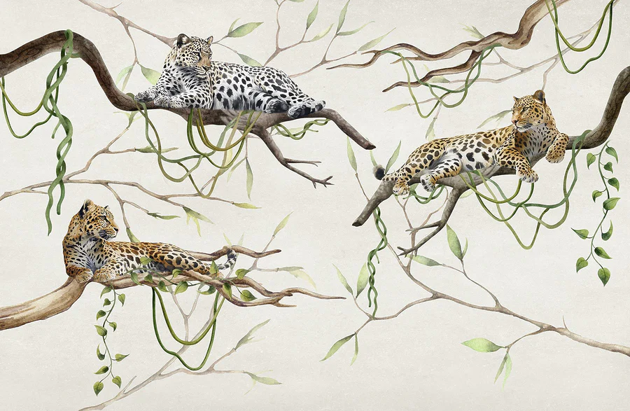 Fototapeta Skupina levhartů ležících na větvích