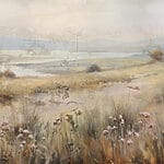 Fototapeta Malba pole s trávou a řekou