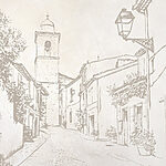 Fototapeta Kresba ulice se zvonicí