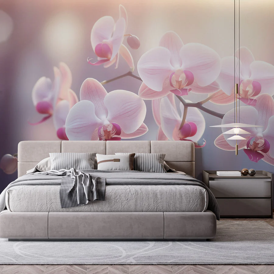 Přeneste šepot přírody do interiéru s "Jemnými květy v měkkém slunečním světle". Tato nástěnná malba zahalí vaše stěny do něžného objetí růžových orchidejí, jako by zachytávaly první paprsky úsvitu. Představte si, že začínáte den obklopeni těmito krásnými květy, jako byste se probudili v klidné zahradě. Je ideální pro útulná zákoutí nebo veselou atmosféru obývacího pokoje. Jemné barvy vytvářejí uklidňující atmosféru a zvou ke klidu v každém prostoru. Kdo by nechtěl popíjet kávu pod těmito krásnými květinami? Je to jako tajná zahrada, kterou není třeba zalévat!