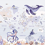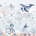 Fototapeta Mapa světa s mořskými živočichy