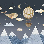 Fototapeta Velryba a horkovzdušný balón na obloze