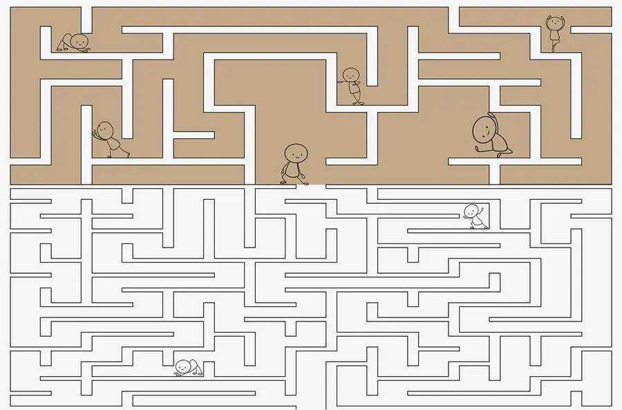 Fototapeta Hra s labyrintem a lidmi chodícími po stěně