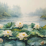 Fototapeta Obraz rybníka s bílými květy a zelenými listy