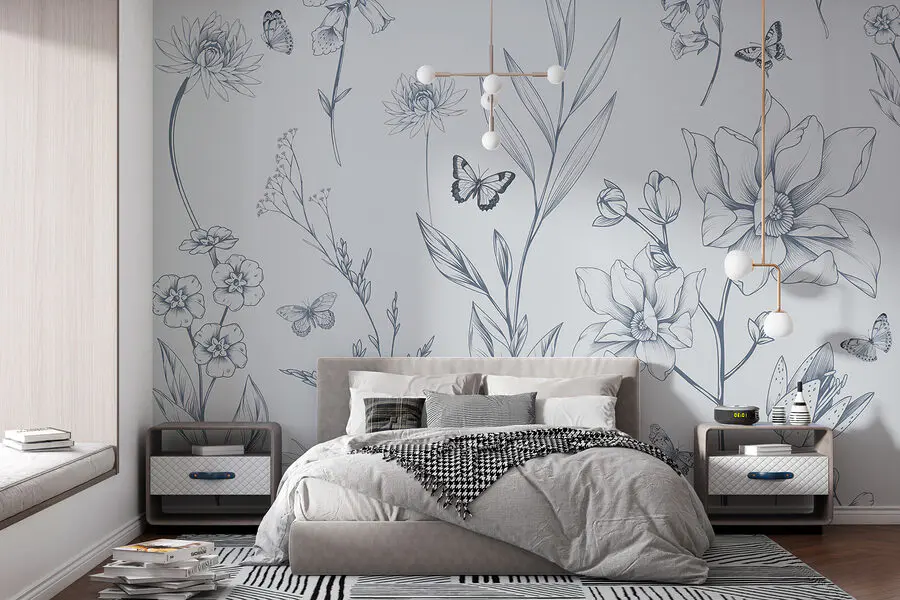 Fototapeta Kresba květin a motýlů