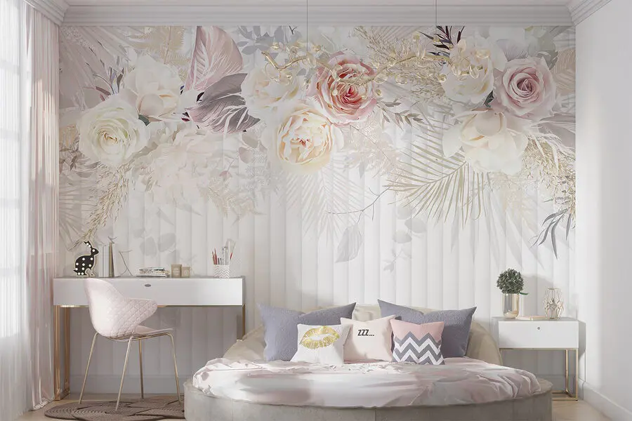 S touto krásnou nástěnnou malbou s jemnými bílými a růžovými květy proměníte každou místnost v útulnou zahradu. Je to, jako byste si do interiéru přinesli celou kytici - bez zalévání! Představte si to: klidné odpoledne, dovnitř proudí sluneční světlo a vy jste obklopeni jemnými květy, díky nimž se každý den cítí o něco výjimečnější. Jemné barvy spolu tančí a vytvářejí uklidňující atmosféru, která je ideální pro relaxaci nebo hostění přátel. Ať už se jedná o obývací pokoj nebo ložnici, tato nástěnná malba dodá charakter způsobem, který je osvěžujícím způsobem okouzlující. Kdo by řekl, že květiny mohou být tak stylové?