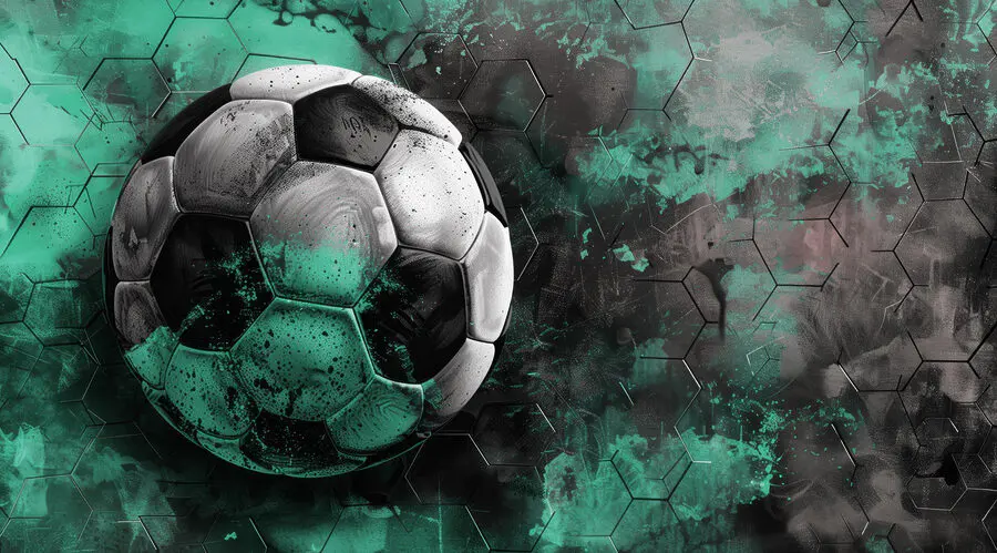Fototapeta Fotbalový míč na zeleném a černém pozadí